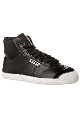KAWASAKI 32 - um tênis acolchoada com roupas da moda! O tênis de couro preto da Kawasaki é tornozelo acolchoado e língua, o que garante, juntamente com o forro de algod?o um ajuste confortável. A camur?a faixa ao longo do tamp?o de borracha é um sotaque refinado. O tênis preto KAWASAKI 32 - simples e legal!